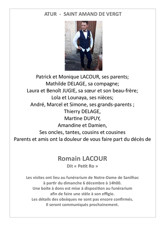 Décédé à Saint-Sauvant (86600, France) le mardi 1 décembre 2020 à l'âge de 28 ans